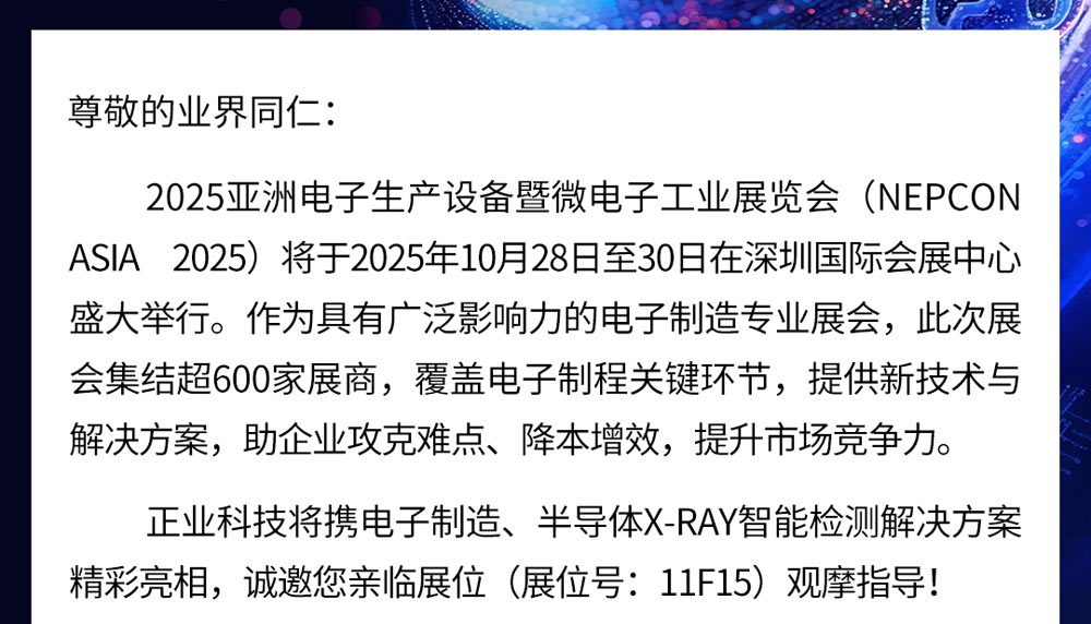 邀請函 | 正業科技誠邀您相聚2025亞洲電子生產設備暨微電子工業展覽會